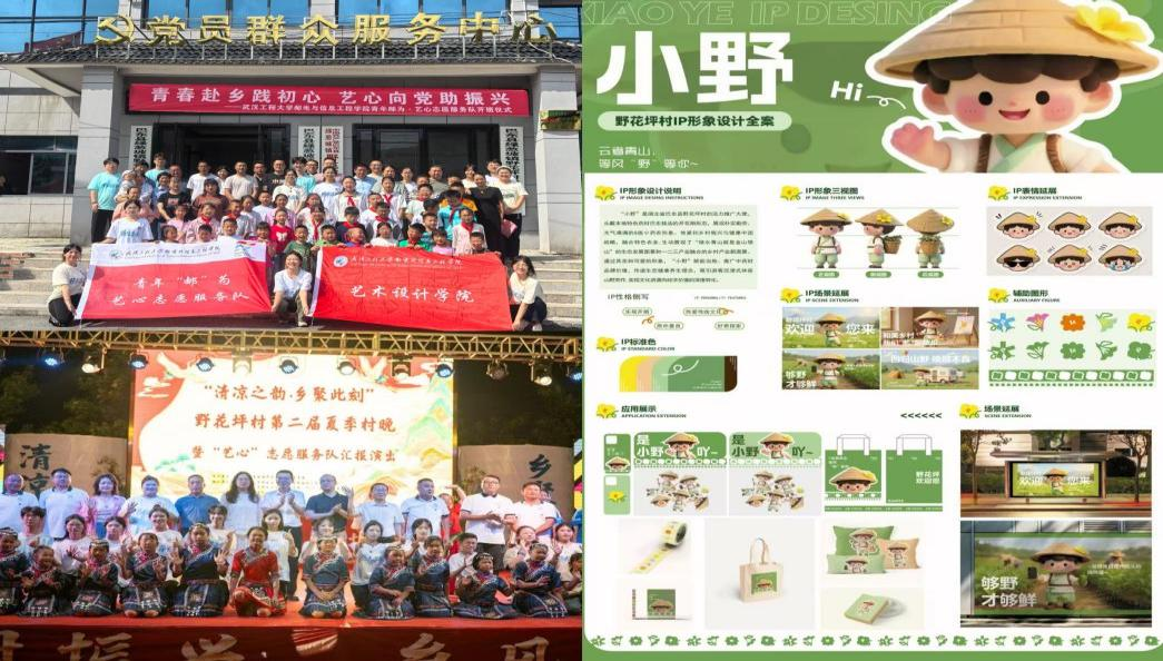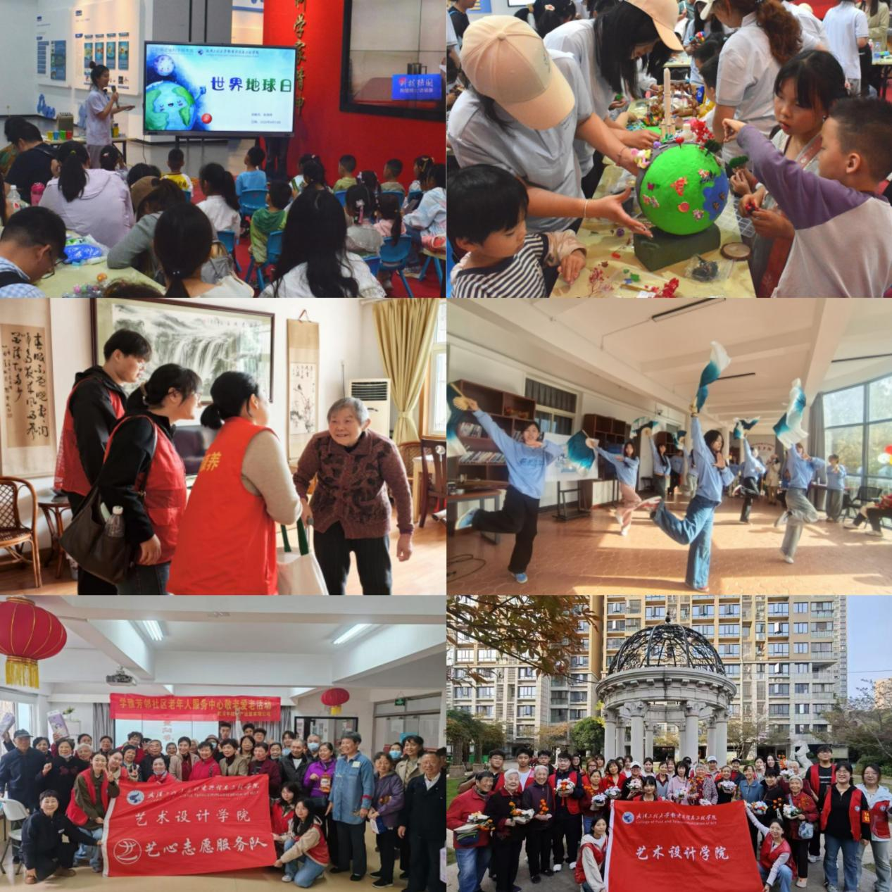 学院推动“党旗飘在一线、党员干在实处”,艺心志愿服务队连续多年深入野花坪村开展乡村振兴服务,通过艺术支教、墙绘美化、乡村IP设计等方式助力乡村文化建设,团队获评校级优秀实践团队。学院与5个周边社区及湖北省科技馆建立常态化共建关系,开展“湖北省科技馆世界地球日科普活动”“艺心暖桑榆·重阳敬老行”“秋韵绘华诞,艺彩耀银龄”等系列主题活动10余场,服务居民近千人次,相关活动获湖北日报等主流媒体报道。
