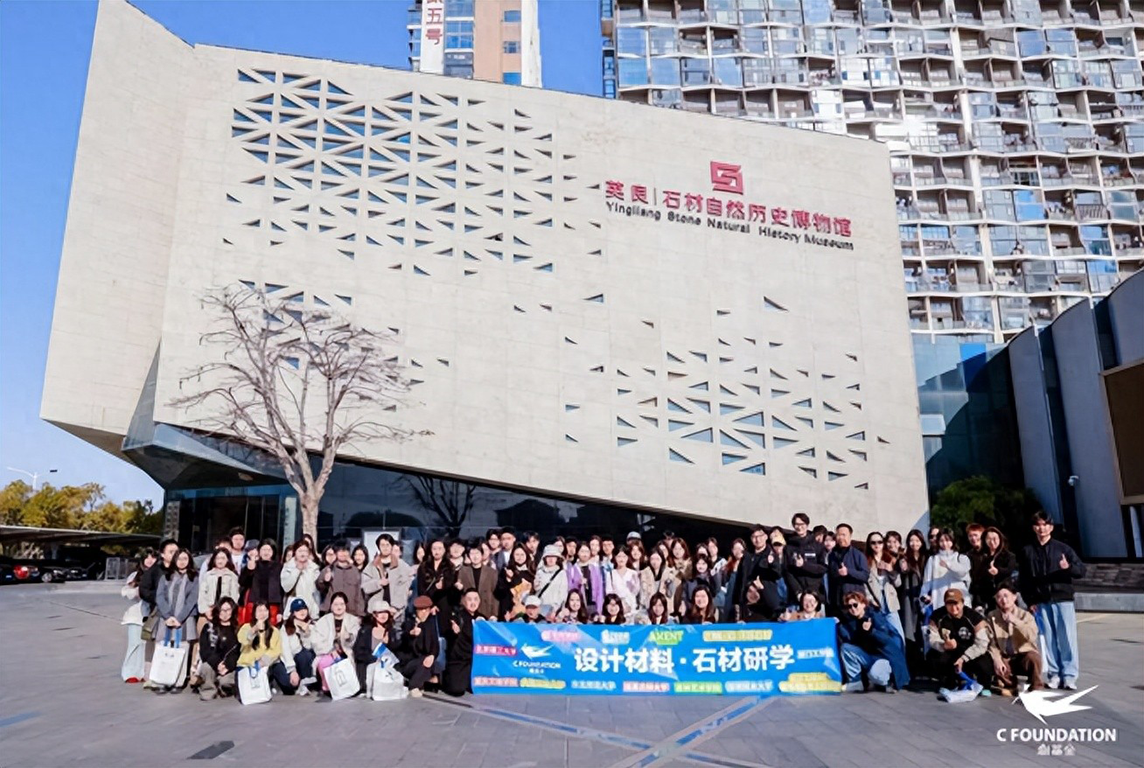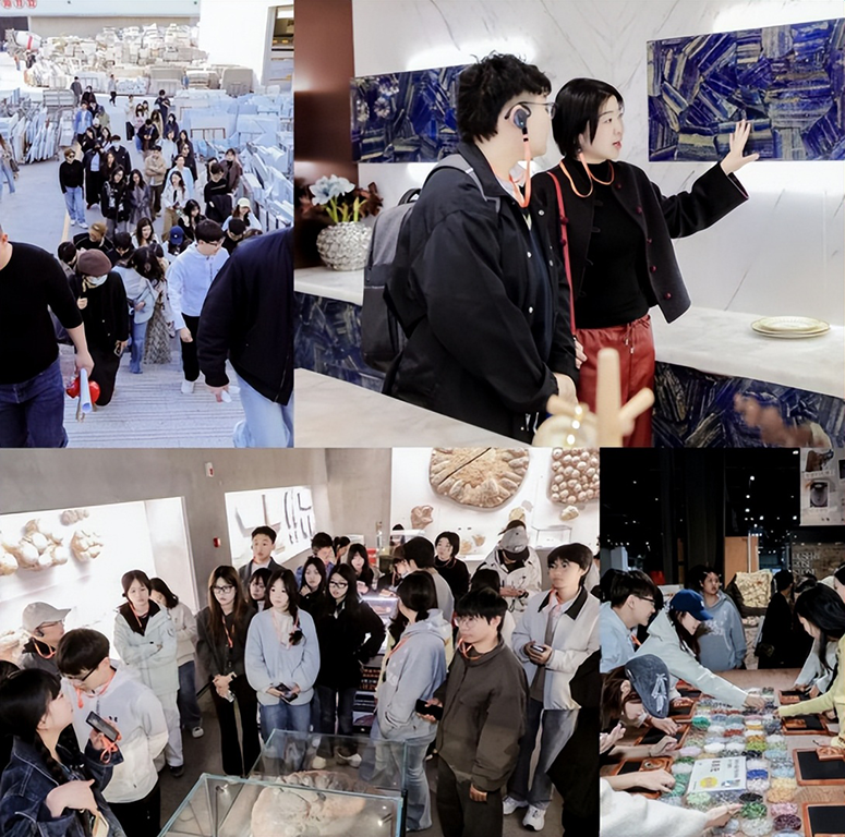 本次石材研学项目以石材材料的文化传承、产业应用与设计创新为核心,设置企业参访、院校交流、展会研讨三大核心模块,构建了从石材文化溯源到产业实践应用、再到设计前沿探索的完整研学体系。研学期间,章瑾主任带领师生先后走进英良集团、环球石材、恩仕集团等行业标杆企业,系统参访英良石材自然历史博物馆、五号仓库全球石材选材中心、英良达泰工程中心等核心板块。在英良石材自然历史博物馆,师生们循着石材从宇宙陨石、岩矿化石到石器文明、现代设计应用的发展脉络,深入挖掘石材的文化内涵与材料本质,为产品设计中的文化赋能与材料表达奠定理论基础;在五号仓库全球石材选材中心与英良达泰工程中心,师生近距离观察高端石材的选材标准、加工工艺与工程落地流程,详细了解超大超薄奢石复合板、异形石材等产品的设计与制造逻辑,明晰了石材材料在高端产品与空间设计中的应用边界与创新可能;在环球石材参访中,师生深入学习该企业在矿山经营、石材加工、工程设计等全产业链的技术创新与标准制定经验,其40年深耕石材领域的工艺积淀与超200项专利技术,为产品设计的材料创新与工艺落地提供了重要实践参考;在恩仕集团的交流中,师生聚焦智能卫浴与石材材料的跨界融合,探讨了新材料与智能产品结合的设计思路,拓宽了产品设计的跨界创新视野。