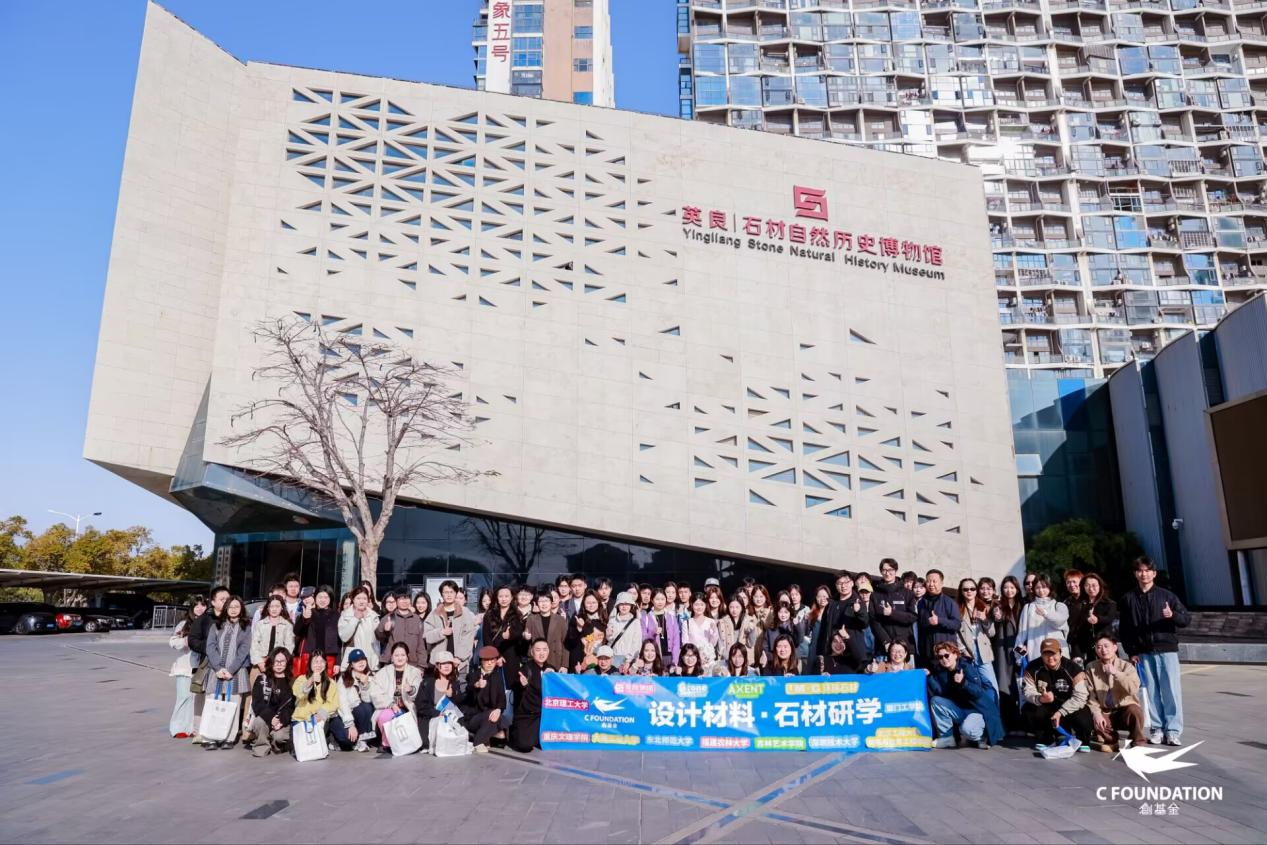 本次石材研学项目以石材材料的文化传承、产业应用与设计创新为核心,设置企业参访、院校交流、展会研讨三大核心模块,构建了从石材文化溯源到产业实践应用、再到设计前沿探索的完整研学体系。研学期间,章瑾主任带领师生先后走进英良集团、环球石材、恩仕集团等行业标杆企业,系统参访英良石材自然历史博物馆、五号仓库全球石材选材中心、英良达泰工程中心等核心板块。在英良石材自然历史博物馆,师生们循着石材从宇宙陨石、岩矿化石到石器文明、现代设计应用的发展脉络,深入挖掘石材的文化内涵与材料本质,为产品设计中的文化赋能与材料表达奠定理论基础;在五号仓库全球石材选材中心与英良达泰工程中心,师生近距离观察高端石材的选材标准、加工工艺与工程落地流程,详细了解超大超薄奢石复合板、异形石材等产品的设计与制造逻辑,明晰了石材材料在高端产品与空间设计中的应用边界与创新可能;在环球石材参访中,师生深入学习该企业在矿山经营、石材加工、工程设计等全产业链的技术创新与标准制定经验,其 40 年深耕石材领域的工艺积淀与超 200 项专利技术,为产品设计的材料创新与工艺落地提供了重要实践参考;在恩仕集团的交流中,师生聚焦智能卫浴与石材材料的跨界融合,探讨了新材料与智能产品结合的设计思路,拓宽了产品设计的跨界创新视野。