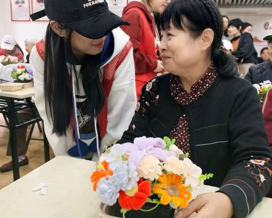 重阳岁岁有,今又遇佳期。10月29日下午,武汉工程大学邮电与信息工程学院艺术设计学院“艺心”志愿服务队走进红星社区养老服务中心,党员同志、入党积极分子与25级新团员组成的志愿者队伍,用创意与陪伴为老人们送上独特的节日祝福,让这个重阳因“花”与“情”更添暖意。 【花房初绽:提前布置的温馨序曲】 活动前一小时,志愿者已将向日葵、康乃馨等鲜花与工具摆放妥当,活动室化身秋日花房。“奶奶们喜欢亮色,向日葵放中间更热闹!”志愿者细心调整花材,静待老人到来。 ![]() 【初见如亲:一句问候暖透心房】 下午三点,老人们在社区工作人员的陪伴下步入活动室,志愿者立刻上前搀扶问候:“奶奶重阳安康,这边坐!”82岁的王奶奶拉着志愿者的手笑言:“你们来了,屋里一下子就暖了!”简单互动间,陌生感消散,活动室满是“祖孙”般的亲昵。 ![]() 【指尖生花:老人们的“艺术童心”】 插花活动伊始,志愿者曾担心老人觉得复杂,却被他们眼中的光芒打动:85岁陈奶奶拾起玫瑰与龟背叶,剪枝、搭配一气呵成,“年轻时搞宣传画花,这点功夫没忘!”她添上小雏菊,花束如跳动的火焰,笑容比花更艳。老人们各展创意:有人以向日葵象征“家的阳光”,有人用康乃馨编“星星捧月”,更有老人为选百合“争论”后笑称“百花齐放才好”。志愿者蹲身递剪、俯身指导,夸赞声中,老人们举着作品左看右看,笑意藏不住。 ![]() ![]() 【故事里的时光:陪伴是最好的“花肥”】 插花间隙,岁月故事在活动室流淌。78岁刘奶奶轻抚月季:“老头子曾说我像月季,好看又耐看。”志愿者静坐倾听,轻拍她手背:“以后常来听您讲他的故事。”李奶奶用向日葵插出“金色花田”,笑忆农村种向日葵的岁月:“杆子比人高,风吹哗啦啦响!”志愿者打趣:“奶奶的花会‘唱歌’!”逗得满室欢笑。 ![]() ![]() 【花束载情:重阳最暖是团圆】 活动尾声,老人们举花合影。89岁赵奶奶捧紧花束:“这花要放床头天天看!”夕阳下,花束泛着暖光,志愿者与老人身影交叠如“秋日团圆图”。 这场活动,插的是花,更是心与心的连接——老人要的从不是精致作品,而是有人听他们说话、陪他们耗时光;志愿者给的也不只是指导,而是把老人当亲人的耐心与真心。重阳已至,温情不散:陪伴,才是世间最暖的“重阳糕”;真心,方为岁月生花的“魔法”。 ![]() |